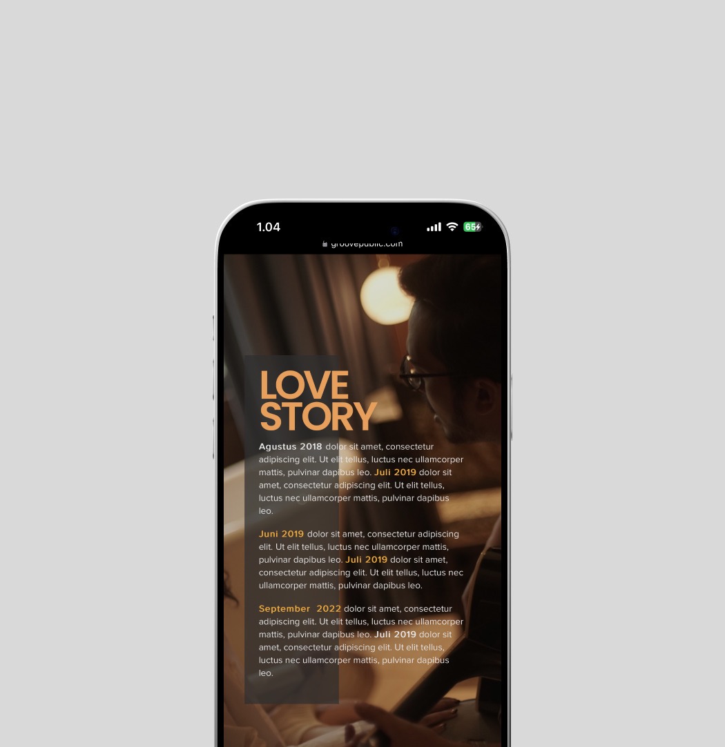 Nama tamu unlimited Kata pengantar undangan (Request) Hitungan hari Save the date Request background music RSVP Jumlah Foto 20 + 2 profil foto Aktif 1 Tahun Link live streaming Dompet digital (popup) Comment Ganti warna background Revisi 3x